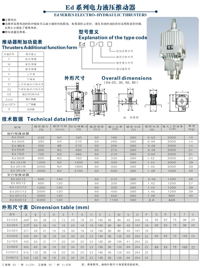 ED系列電力液壓推動(dòng)器,適用于YWZ4,YWZ5,YWZ9等電力液壓制動(dòng)器的工作驅動(dòng)。